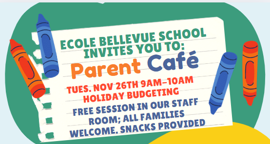 Nov 26th- Parent Cafe- Holidays on a Budget (Staff room, all families welcome)