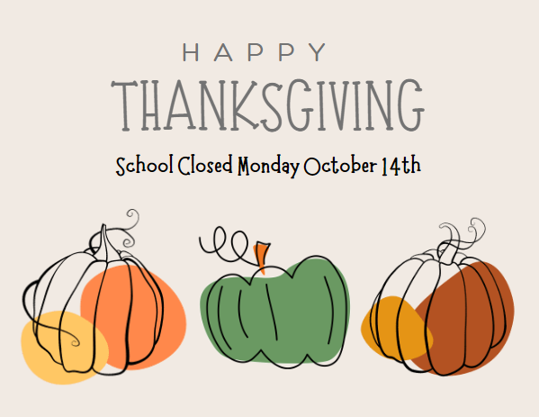 MONDAY OCT. 14TH- SCHOOL CLOSED